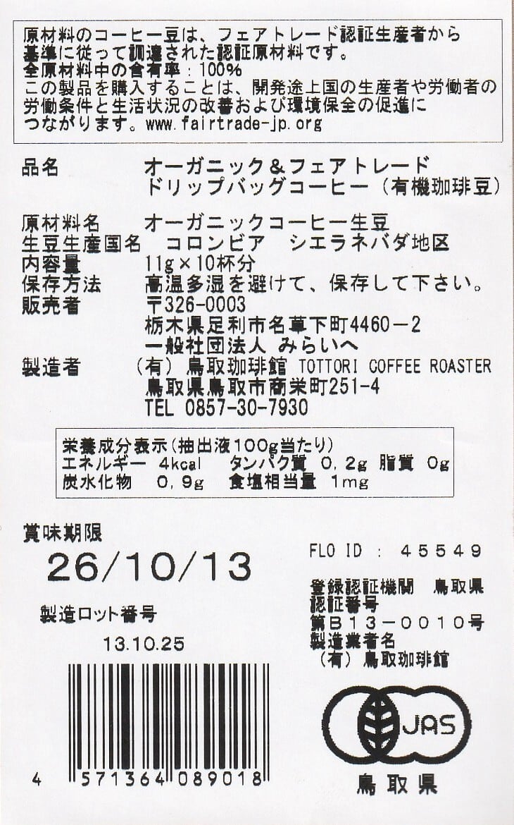 認証:有機JASオーガニック、フェアトレード