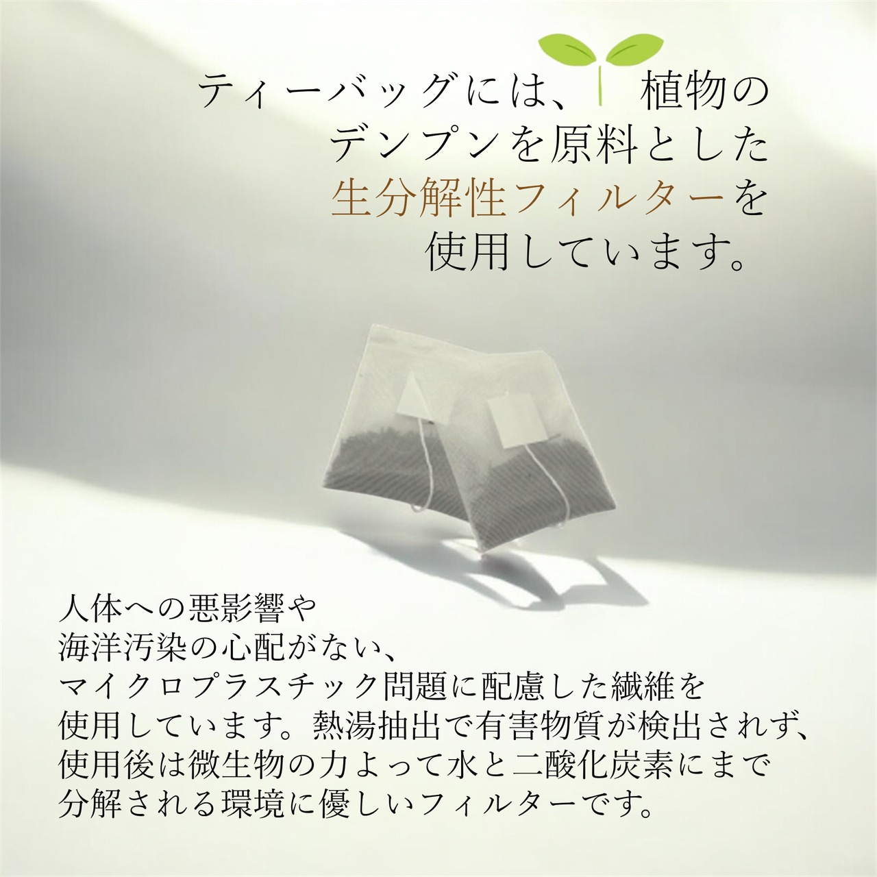 ティーバッグには、植物のデンプンを原料として作られた生分解性フィルターを使用しています。