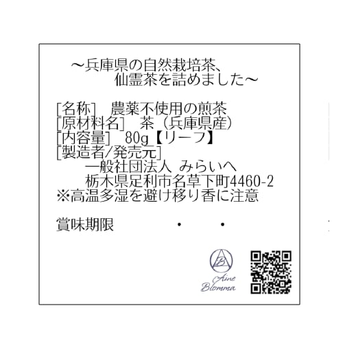 兵庫・神河町の山あいで、農薬や肥料を一切使わず自然のままに育った茶葉から生まれたた煎茶。