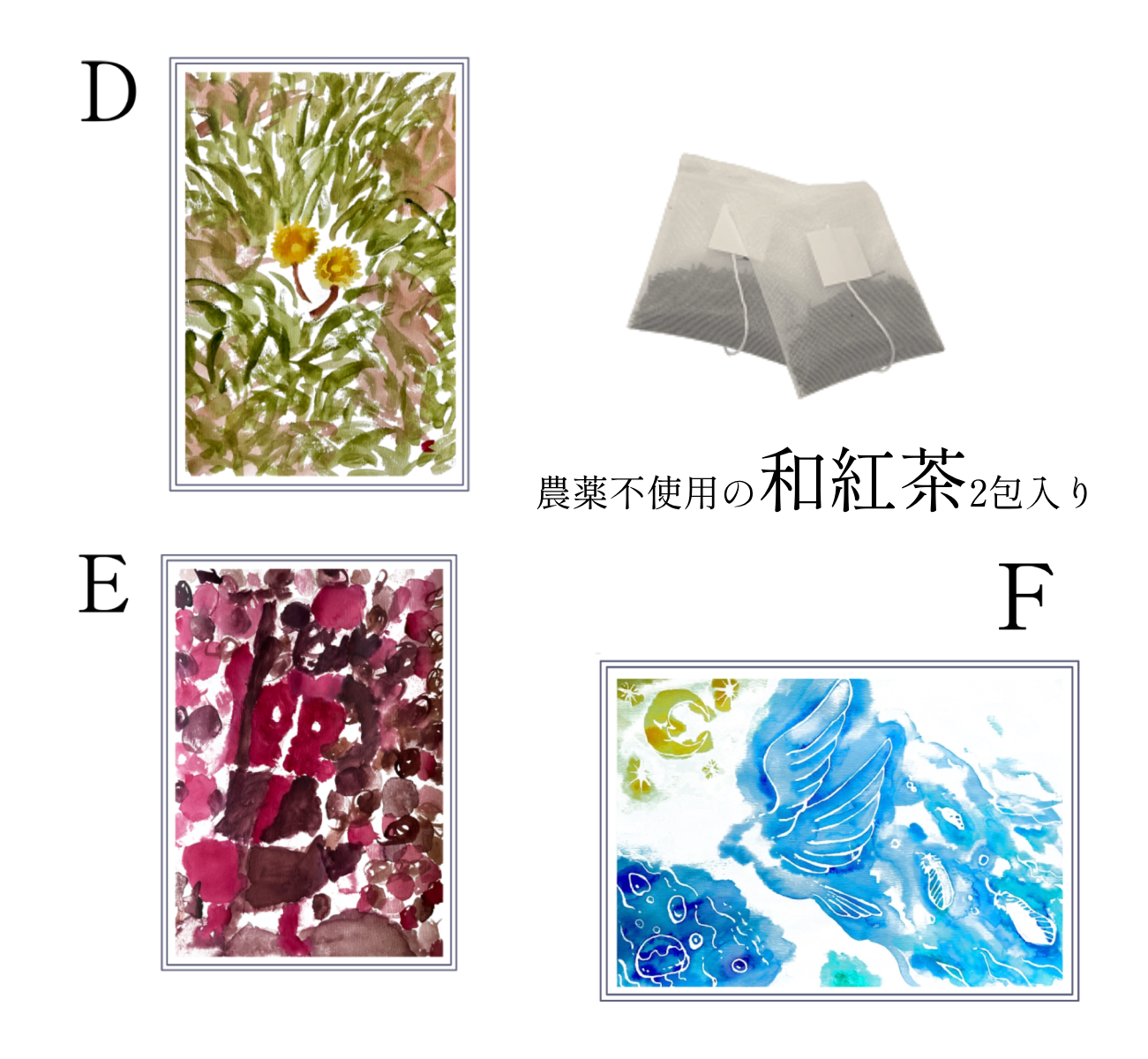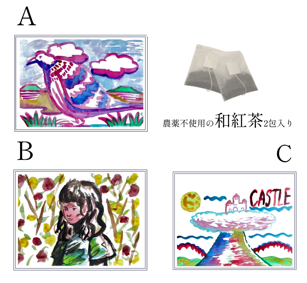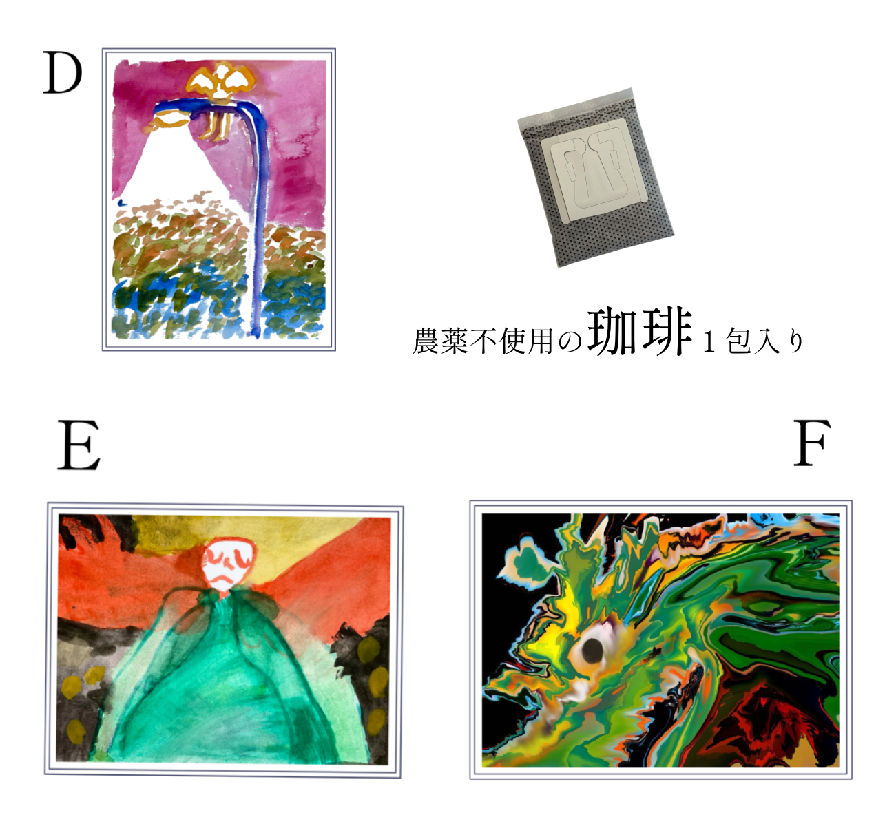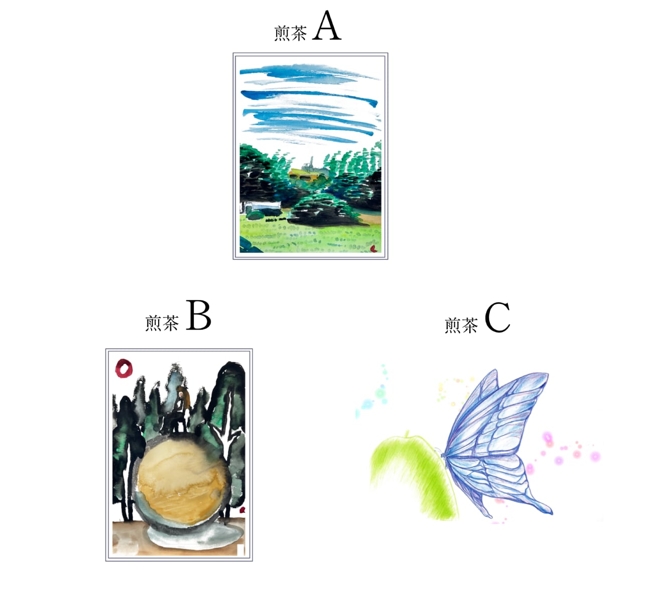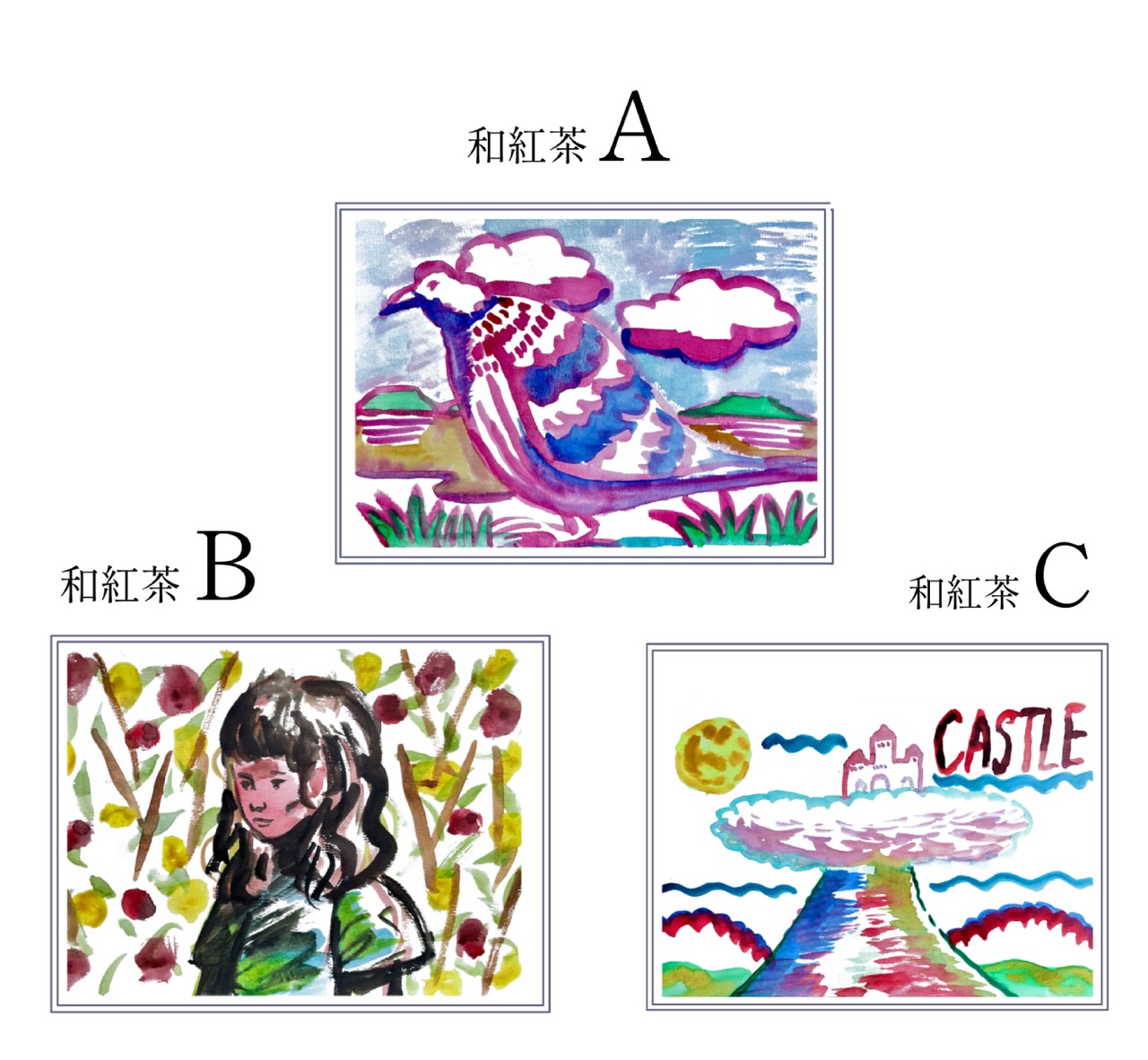 お茶と珈琲はそれぞれに6種類のアートがあり、お好きなものをお選びいただけます。クッキーは、プレーン、チーズ、ハニーソルトの3種類からお選びいただけます。